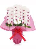おめでたい色合いから、お祝い事に適しており、選挙の当選祝いや開業祝い、叙勲祝いなどにおすすめです。 サイズも大きすぎないので、お正月のお年賀やお誕生日祝いなど、個人宅へ贈るお祝いにも喜ばれます。 定番の白一色に比べ赤色が入っているので華やかさが増し、女性への贈り物にも最適です。赤リップは縁起が良い紅白カラーなので大輪の中でも人気が高い胡蝶蘭です。 つぼみを含めて1本あたり約10~12輪で合計30~36輪のお花がついており、高さは約80cmと法人ギフトでは定番のサイズです。 |