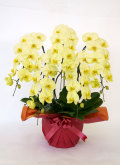アポロンは『世界らん展2015』の胡蝶蘭部門で、『奨励賞』を受賞しました。 咲き始めのころは黄緑に近い淡い黄色で、咲き進んでくると白に近い淡い黄色となります。1本あたり約10~12輪×5本で合計50~60輪とボリュームがあり、高さは約85cmです。黄色は「商売繫盛」や「金運上昇」などの意味合いもあり縁起の良いカラーなので、就任祝い、周年祝い、上場祝い等ビジネスシーンのお祝いに最適です。 黄色の大輪胡蝶蘭は珍しいので、沢山の胡蝶蘭が贈られ並べられる場でも、個性的な色合いとボリューム感でひときわ目立ち、他社との差をつけることができます。 法人ギフトの他に、黄色がテーマ色である傘寿や米寿などの長寿祝いにも人気です。光のあたりぐあい等により当社からお送りする写真では白っぽく見えることがあります。 |