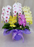 約3種類のミディ胡蝶蘭をミックスしてお送り致します。 カラフルな色合いでインパクトがあり、多くの胡蝶蘭が並ぶ場でもひと際目立ち、注目度が上がります。 とても華やかな色合いなので、お祝いの贈り物に最適で、開店祝いや周年祝い、公演祝いや退職祝いなどにおすすめです。 また、一度に様々な品種のミディ胡蝶蘭を楽しめる為、お花好きの方には贅沢な寄せ植えとして喜ばれます。 母の日やお誕生日のプレゼントとしても人気です。 写真はイメージとなります。品種の指定はできませんので実際には写真とは別の品種が届く可能性がございます。 ご注文いただいてから制作いたしますので出荷まで1~2営業日程度お時間がかかります。 |