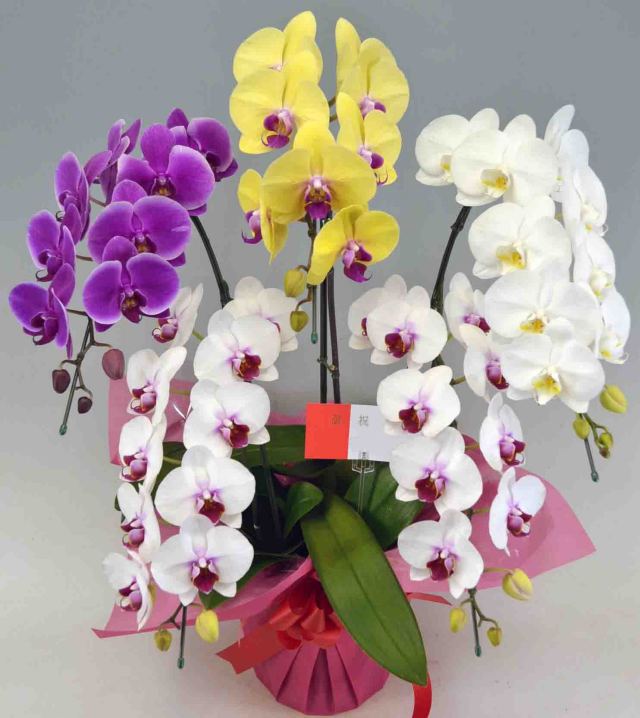 幸福の胡蝶蘭屋さん 4万円台 ミディ胡蝶蘭ミックス8本立ち 価格: ¥45,000 (税込 ¥49,500) [ポイント還元 495ポイント~] 販売期間: 数量: 個 在庫 在庫あり 高さ 約80cm ラッピング 可能です 詳細 ミディ胡蝶蘭のミックス8本立です。 約4~6種類のミディ胡蝶蘭をミックスしてお送り致します。 写真は5本立ちとなりますが8本立ちでの発送となります。品種の指定はできませんので実際には写真とは別の品種が届く可能性がございます。 数に限りがありますのでなくなり次第終了となります。 送料 本州・四国無料 北海道・九州3,240円 沖縄4,320円