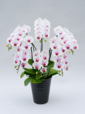 幸福の胡蝶蘭屋さん 3万円台 中大輪胡蝶蘭さくらひめ6本立ち 価格: ¥30,000 (税込 ¥33,000) [ポイント還元 330ポイント~] 販売期間: 数量: 個 在庫 在庫あり 高さ 約70cm ラッピング 可能です 詳細 ミディ胡蝶蘭さくらひめの6本立ち。 名前のとおり、さくらの姫を思わせる愛らしいミディ系の胡蝶蘭。 胡蝶蘭の代表的な原種のアマビリスの血をひくサクラヒメは花径9cmくらいの中輪系品種、花色は縁は白で中心に向かって赤が濃くなる美しいグラデーションです。 花の並びがよく整然と並んだコンパクトな立ち姿で お部屋に飾りやすい手ごろなサイズがハイセンスなパーソナルギフトとして魅力ある逸品です。 送料 本州・四国無料 北海道・九州3,240円 沖縄4,320円