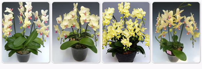 黄色のミディ胡蝶蘭は時期により若干異なります。